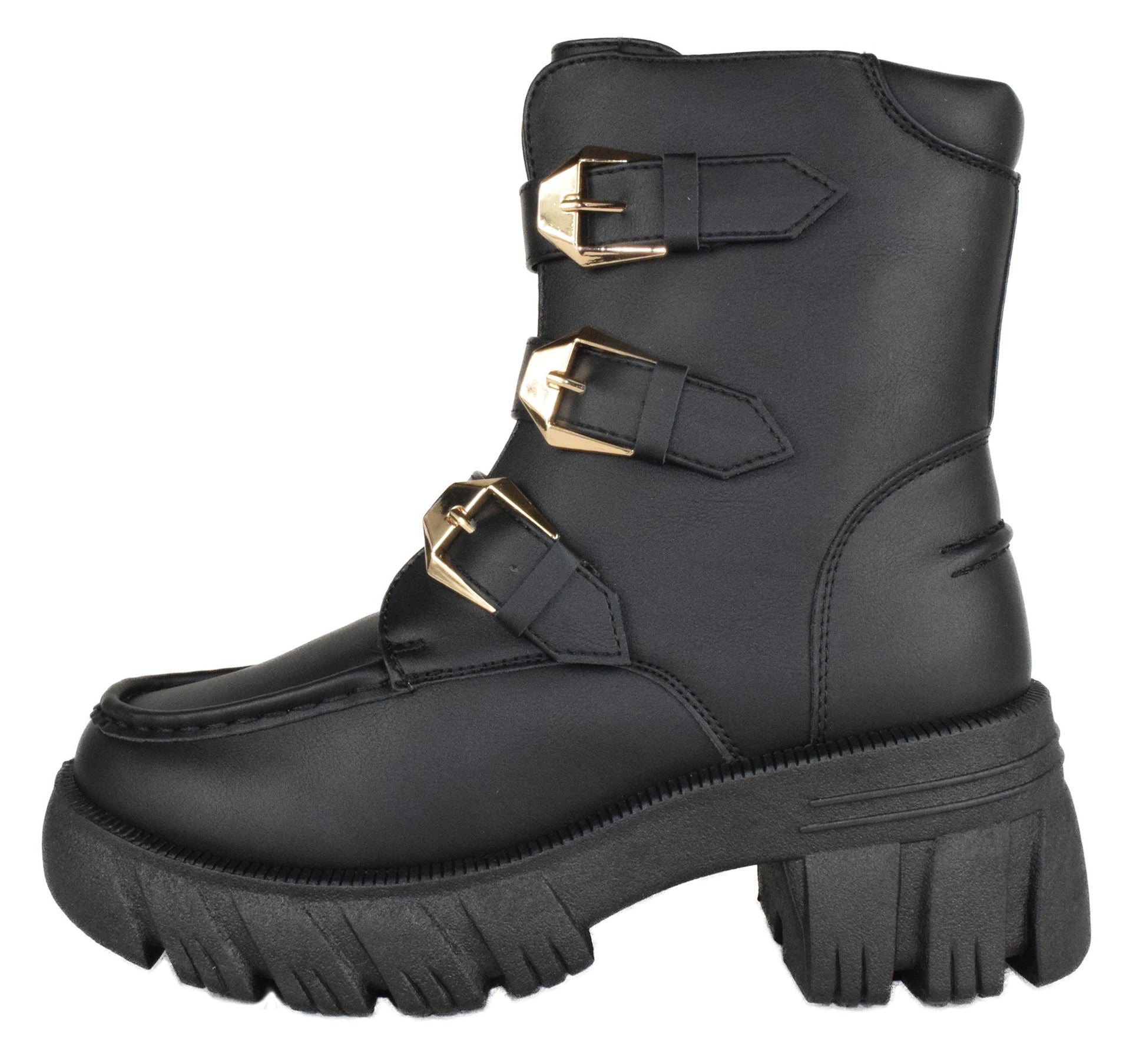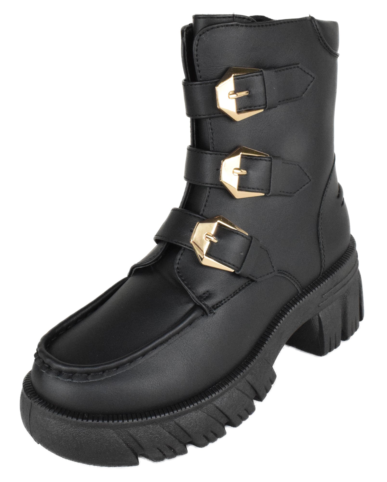 - Forever Women Buckled Motorcycle Riding Style Boots Side Zipper Lug Sole Booties AZUSA-10