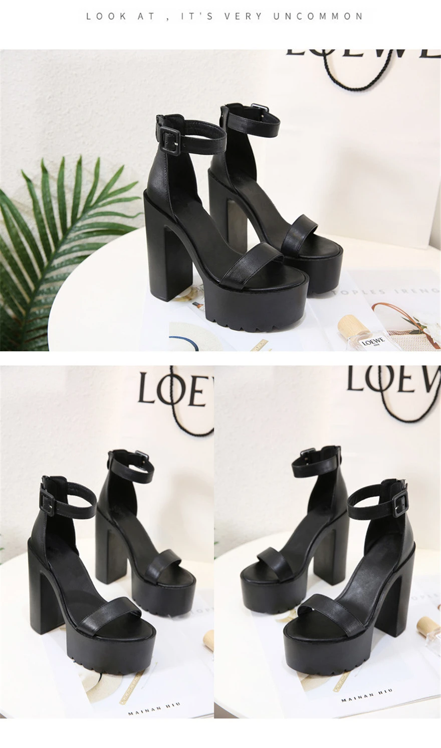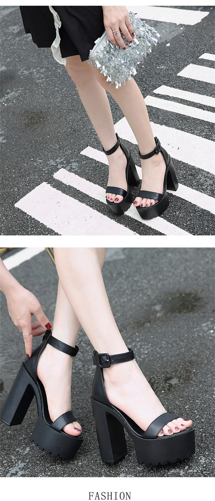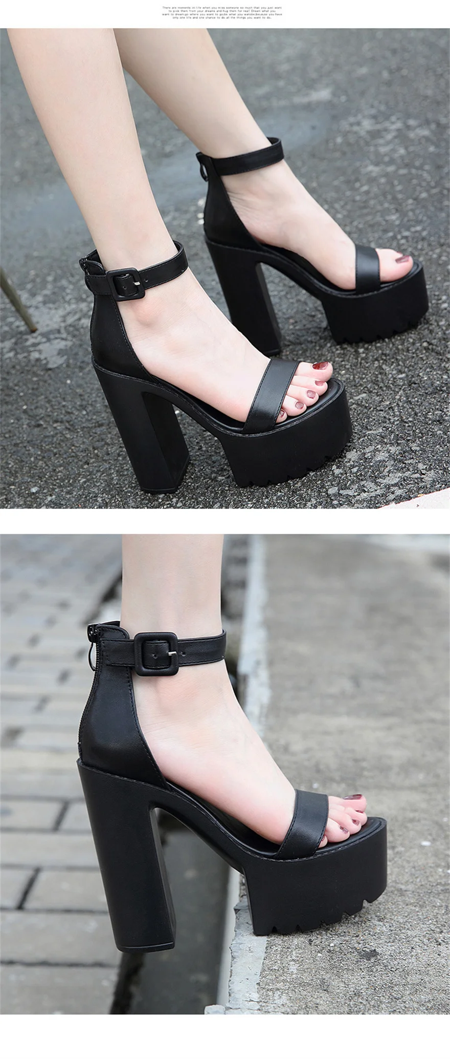 Big Size 34-43 Super High Heels 14cm Roman Sandals Women 2025 Summer PU Leather Platform Ladies Casual Chunky Heel Buckle Shoes