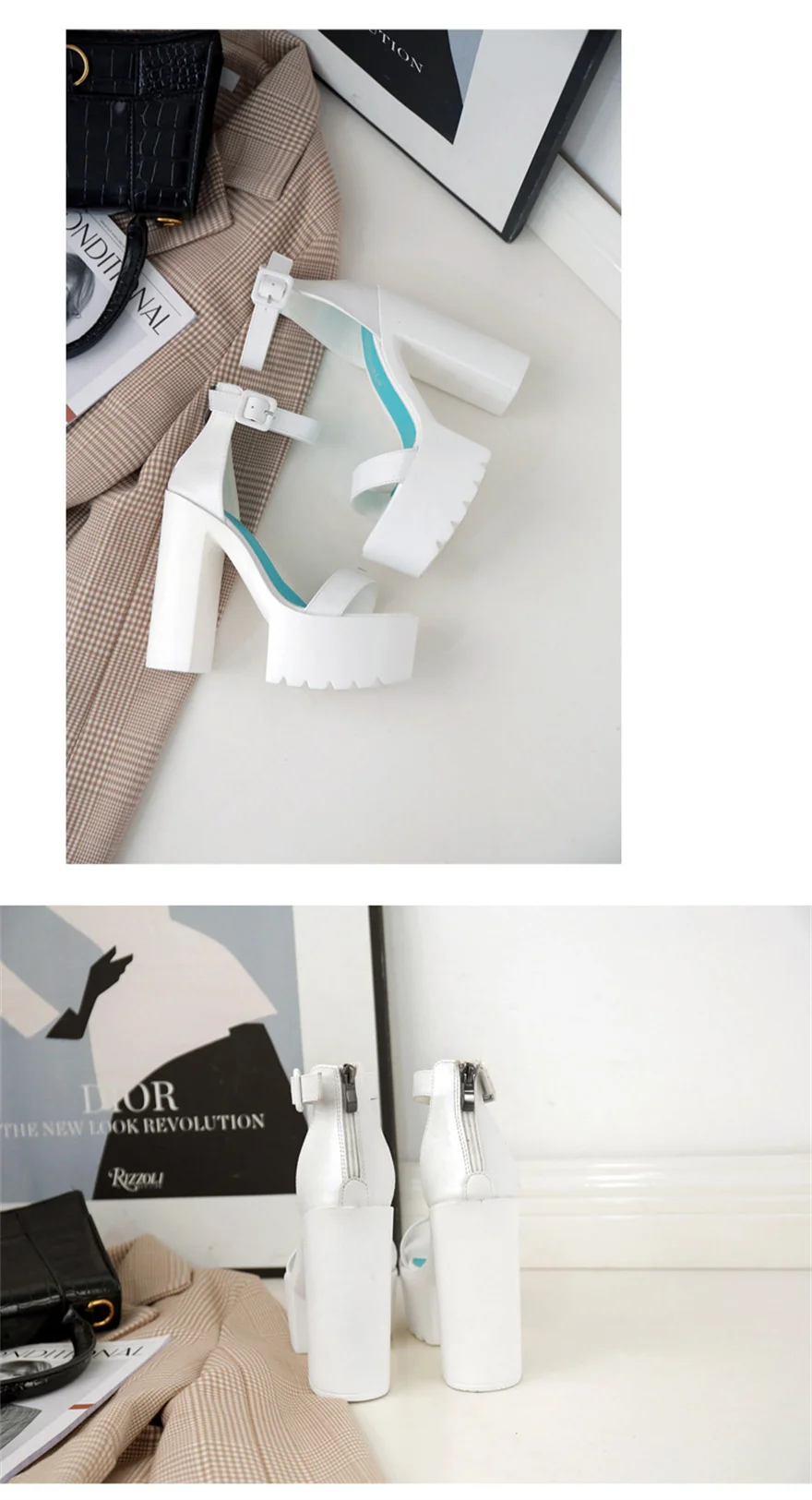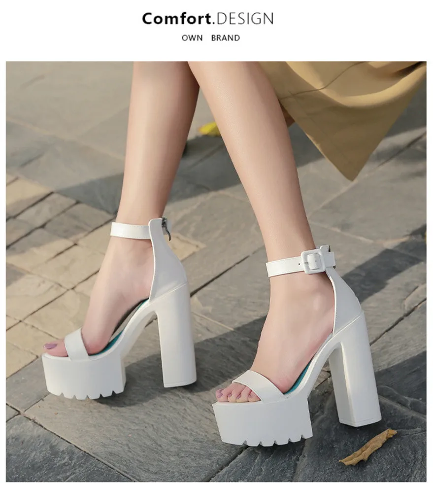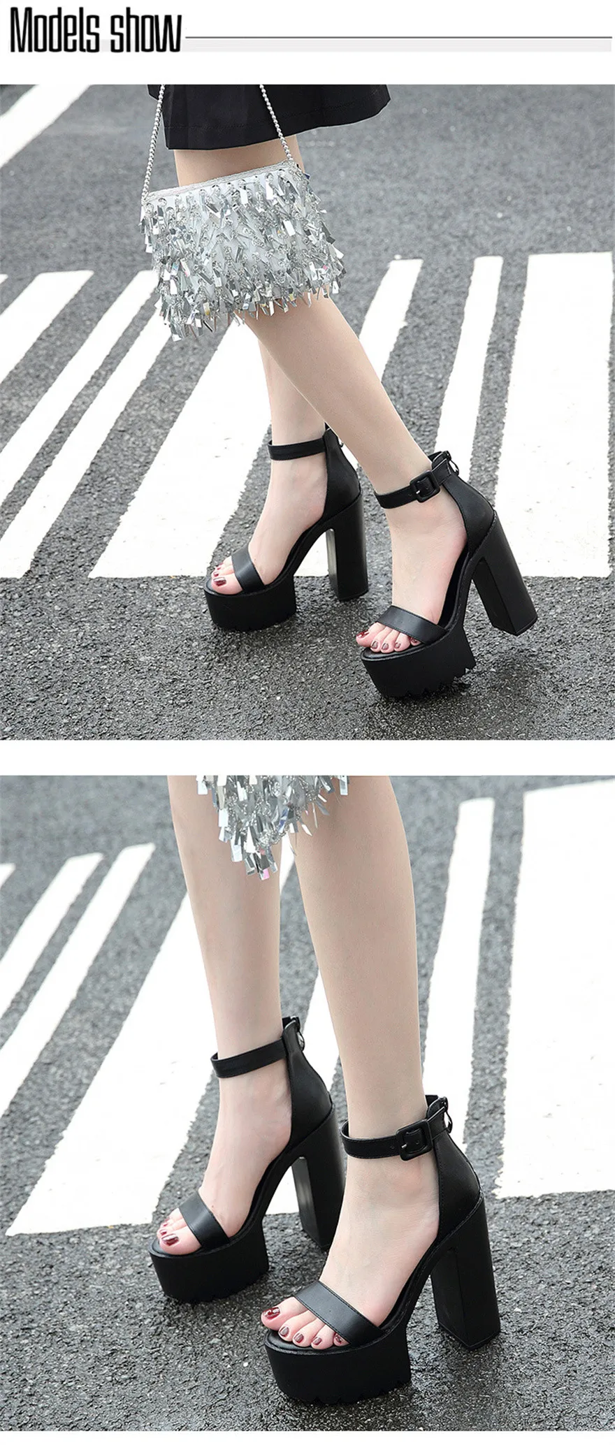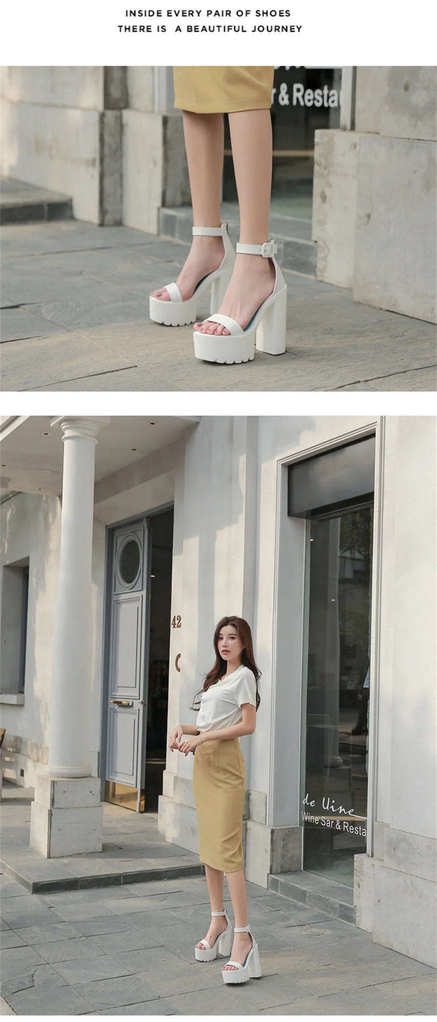 Big Size 34-43 Super High Heels 14cm Roman Sandals Women 2025 Summer PU Leather Platform Ladies Casual Chunky Heel Buckle Shoes