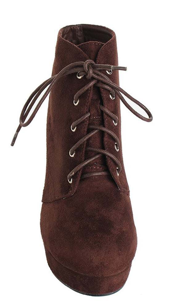 - Forever Women Stacked Chunky Thick High Heels Ankle Boots Hidden Platform Lace Up Booties Camille-86