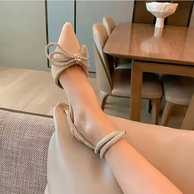 Fashion Glitter Rhinestones Pumps Ladies Sexy Crystal Bowknot High Heels Women Elegant slim heels Party Wedding pumps 36-42