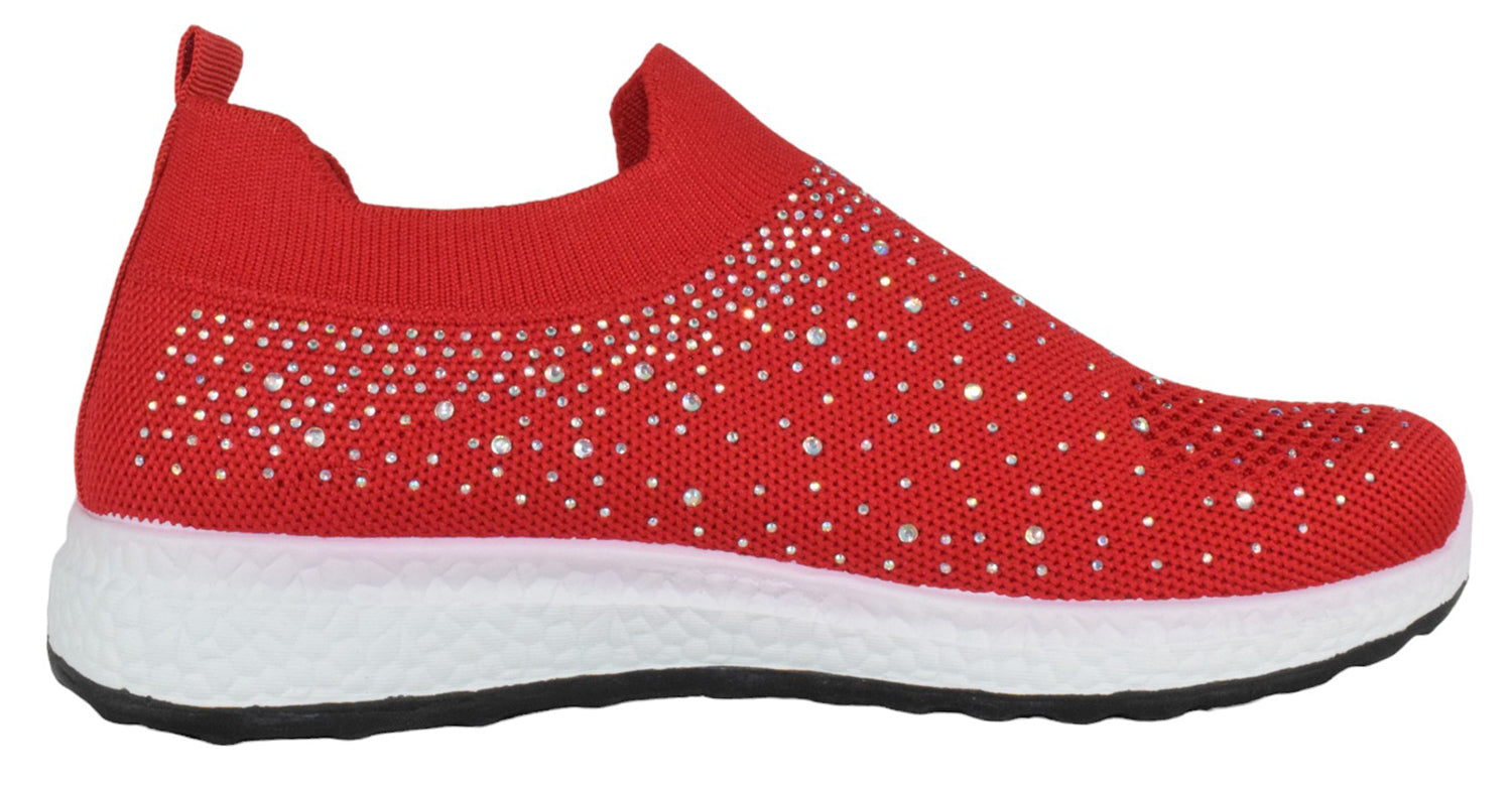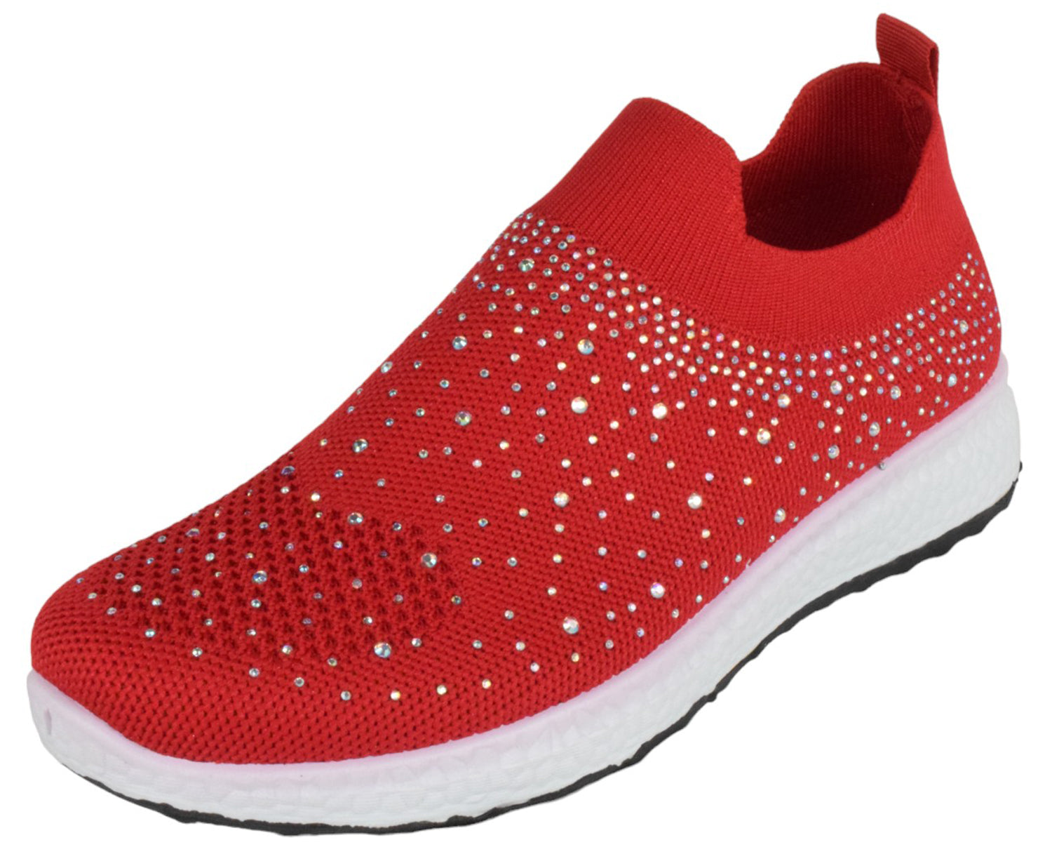 - La Sheelah Flat Women Slip-On Sneakers Comfortable Sport Walking Running Shoes Rhinestone Bling Studs Elastic Breathable Knit Anti-Slip Resistant LABOR-8