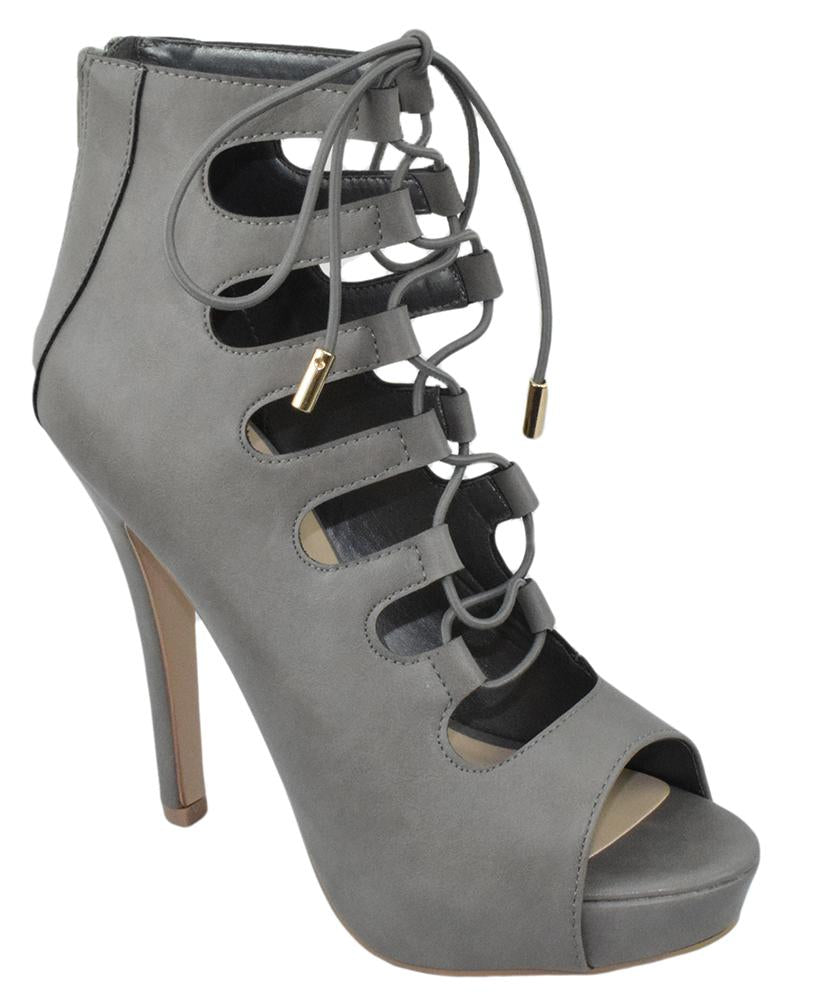 - Delicious Women Stiletto Thin Skinny High Heels Back Zipper Peep Toe Caged Cut Out Gladiator Style Lace Up Hidden Platform PATRON-S