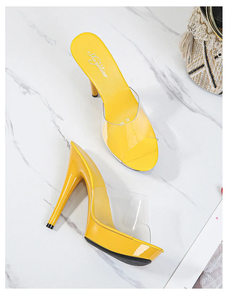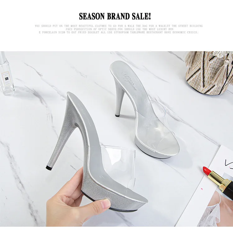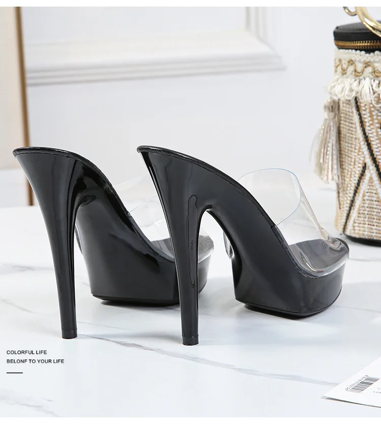 Stripper Heels Slipper female SANDAL WOMAN Summer PVC Slides Waterproof 13cm Thick Bottomed Nightclub Sexy High-heeled Platform