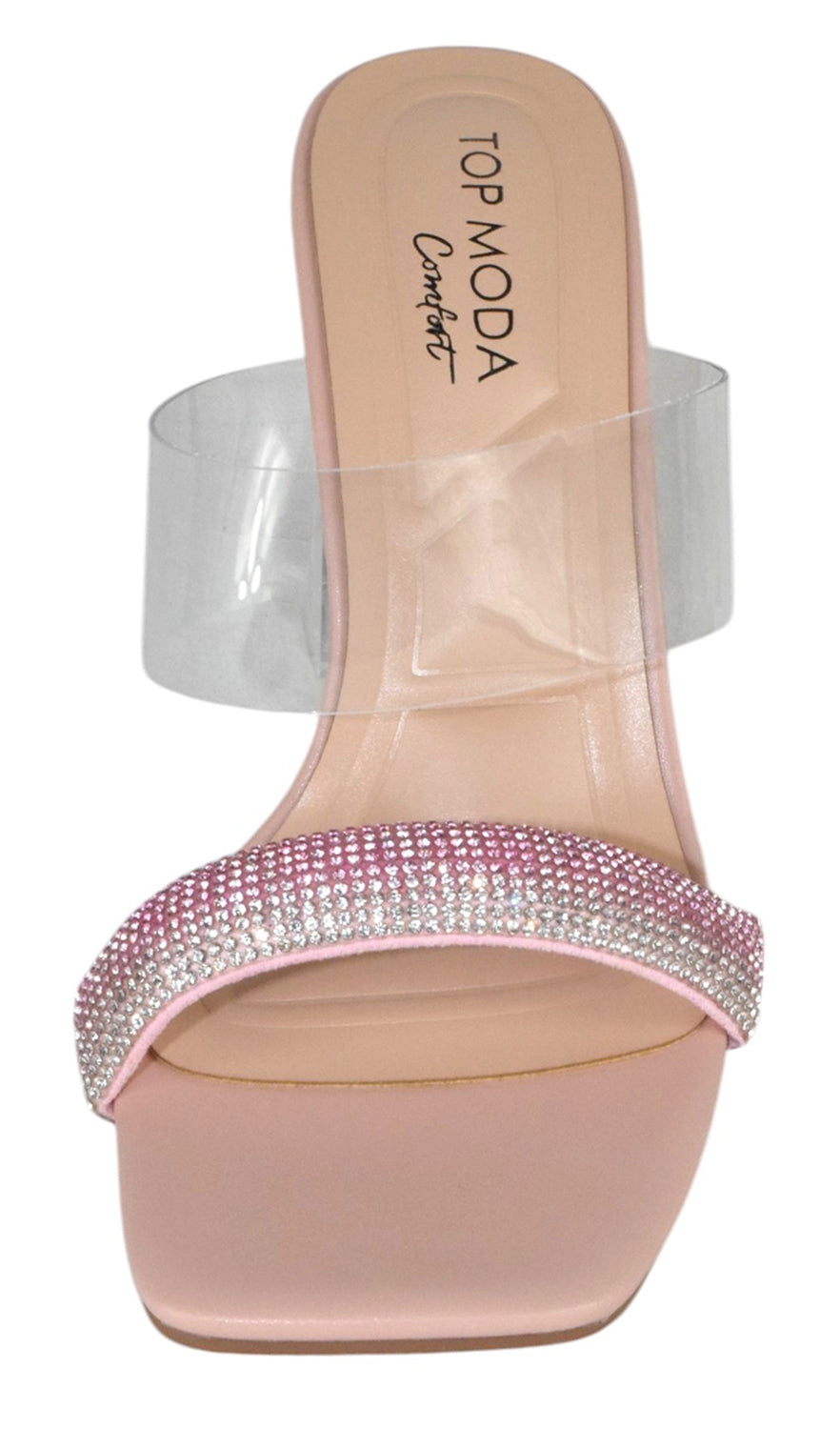 - Top MODA Shoes Women Clear Block Mule High Heels Square-Toe Sandals Strap Bling Rhinestone VENICE-1