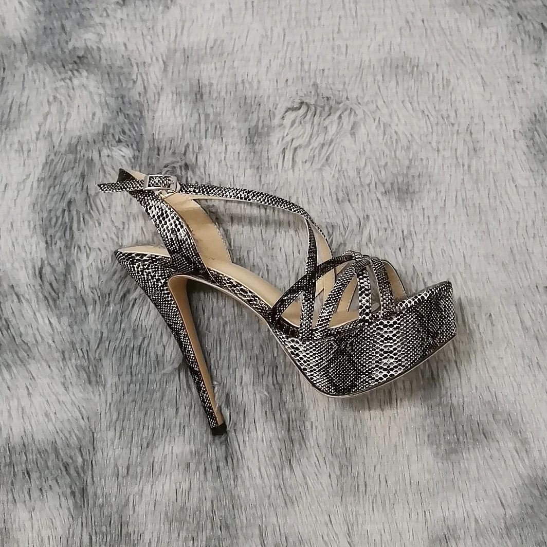 Women Sandals Catwalk Shows 14CM Open Toe Platform High Heels Snake Pattern Stilettos Sexy Ankle Strap Gladiator Party Shoes