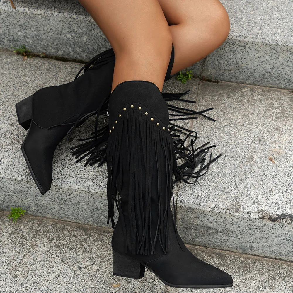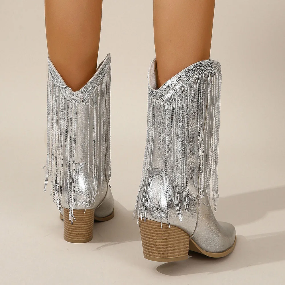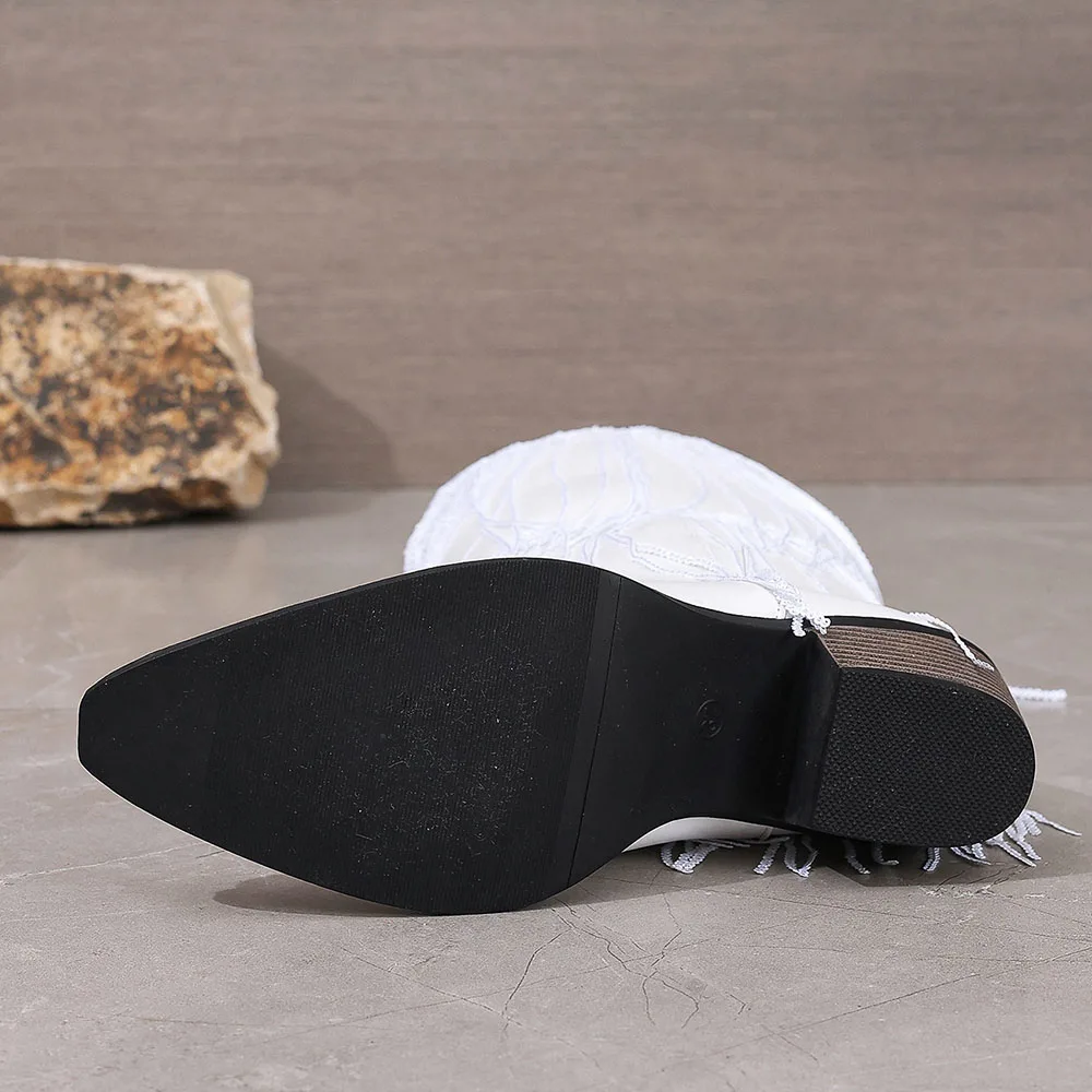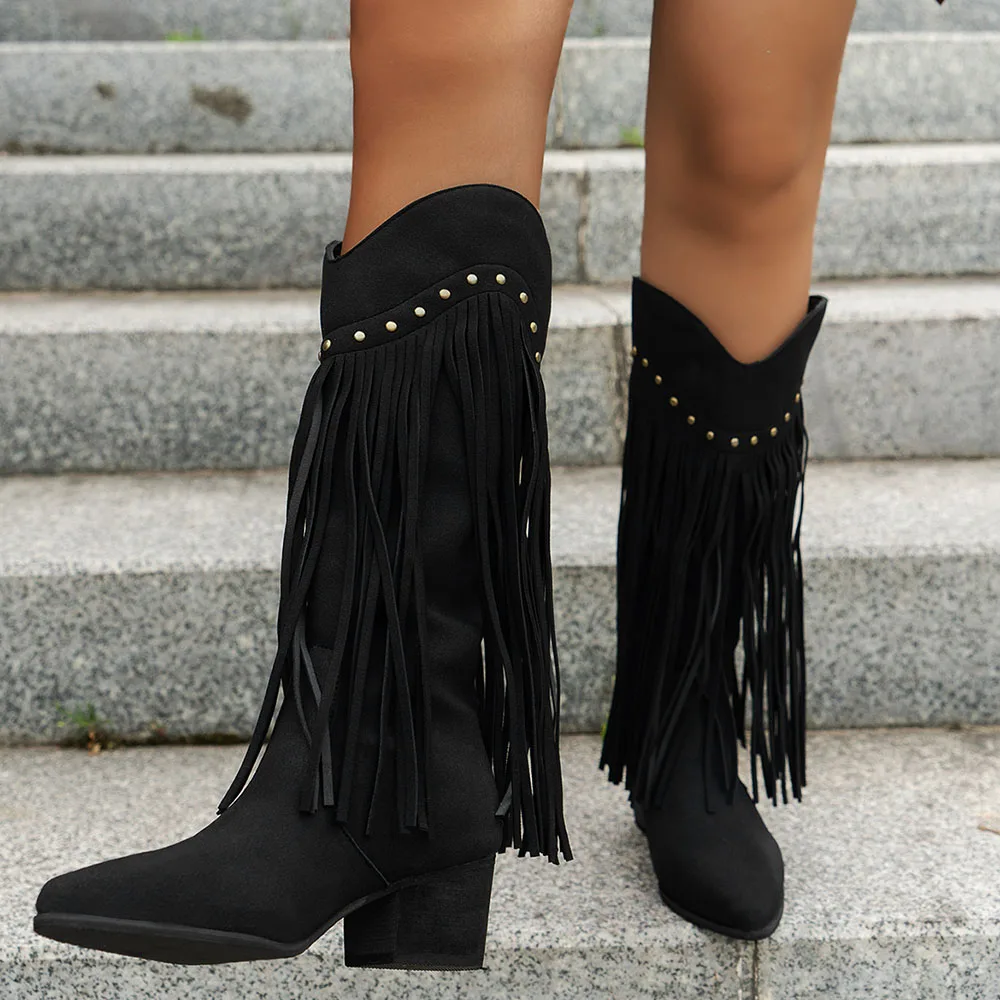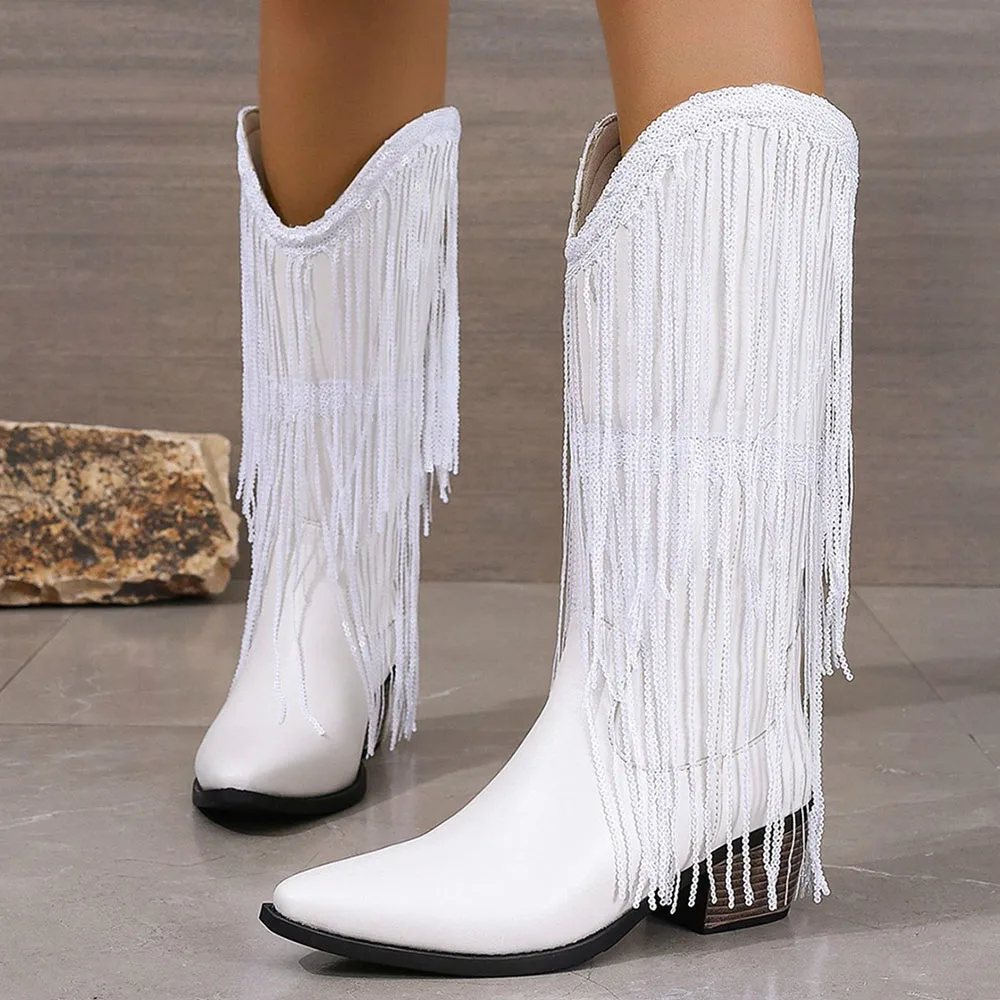 Women's Fringed Cowgirl Boots Concert Western Boot 2025 Spring Summer Vintage Cowboy Boots for Women Pointed Toe Mid-calf Boots